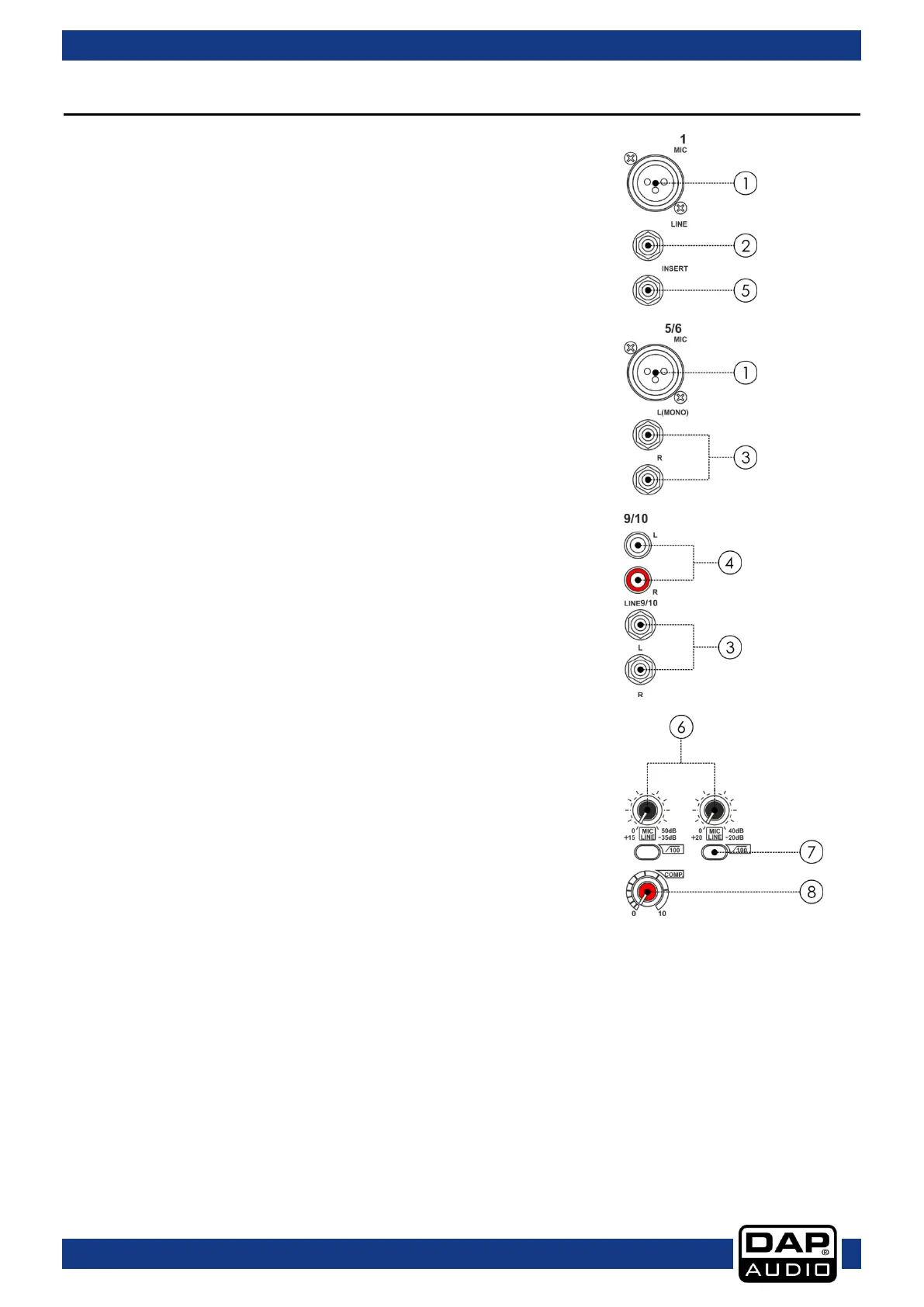 NOTE: Where an input channel provides both a MIC input jack and a