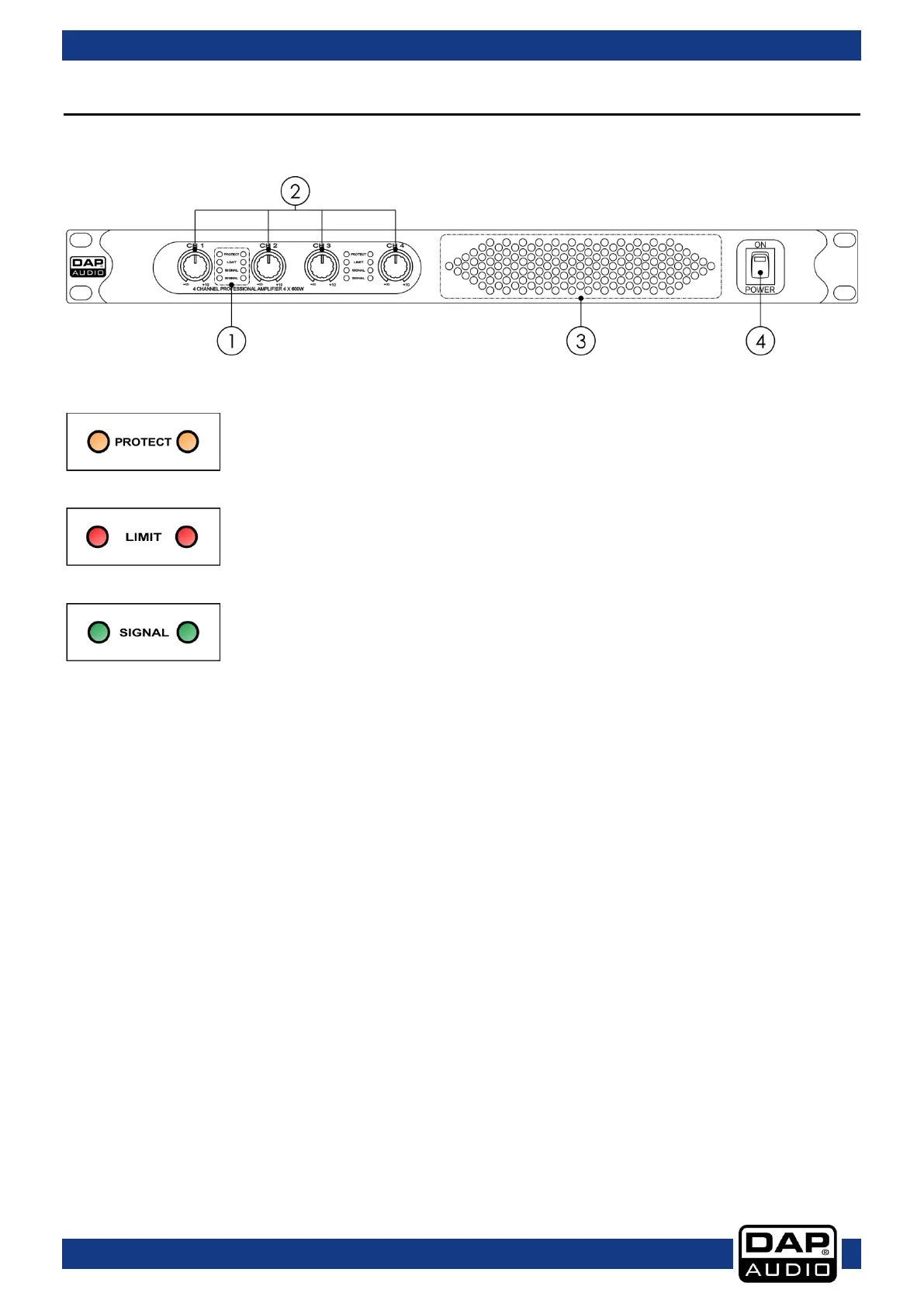 Use this switch to switch the amplifier on. If the device is switched on, the LED will light up in blue.