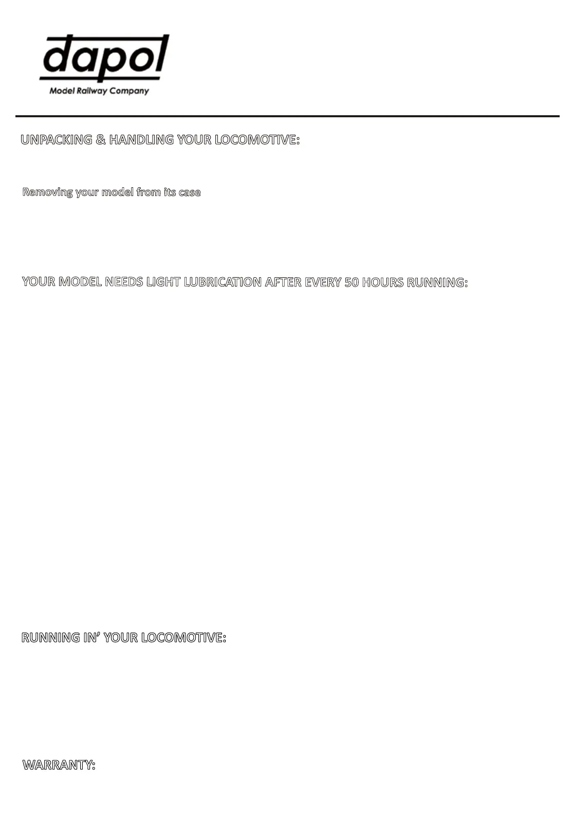 DAPOL Class 121 - Running In and Maintenance; Running In Your Locomotive; Maintenance Oiling Frequency