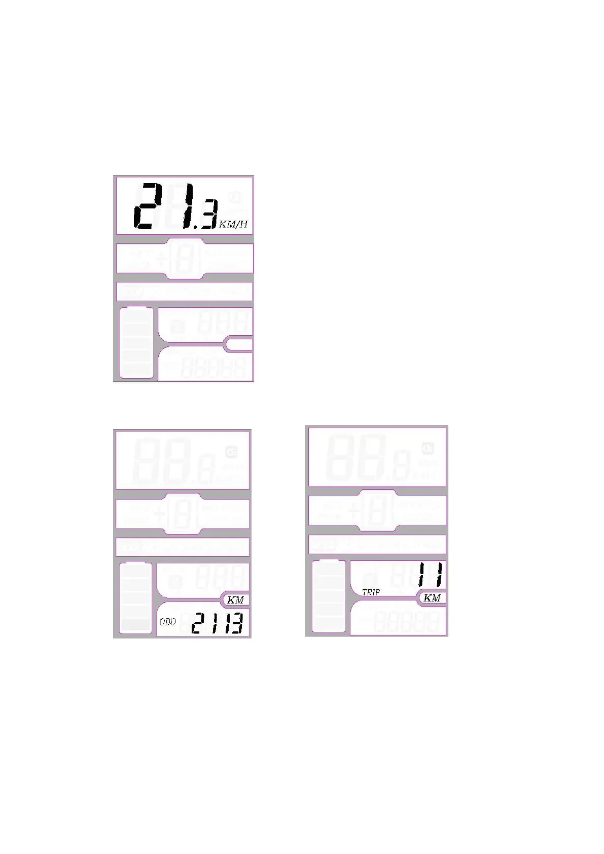 The LCD-K will display speed, Odometer (in whole miles/km) Trip, Assist