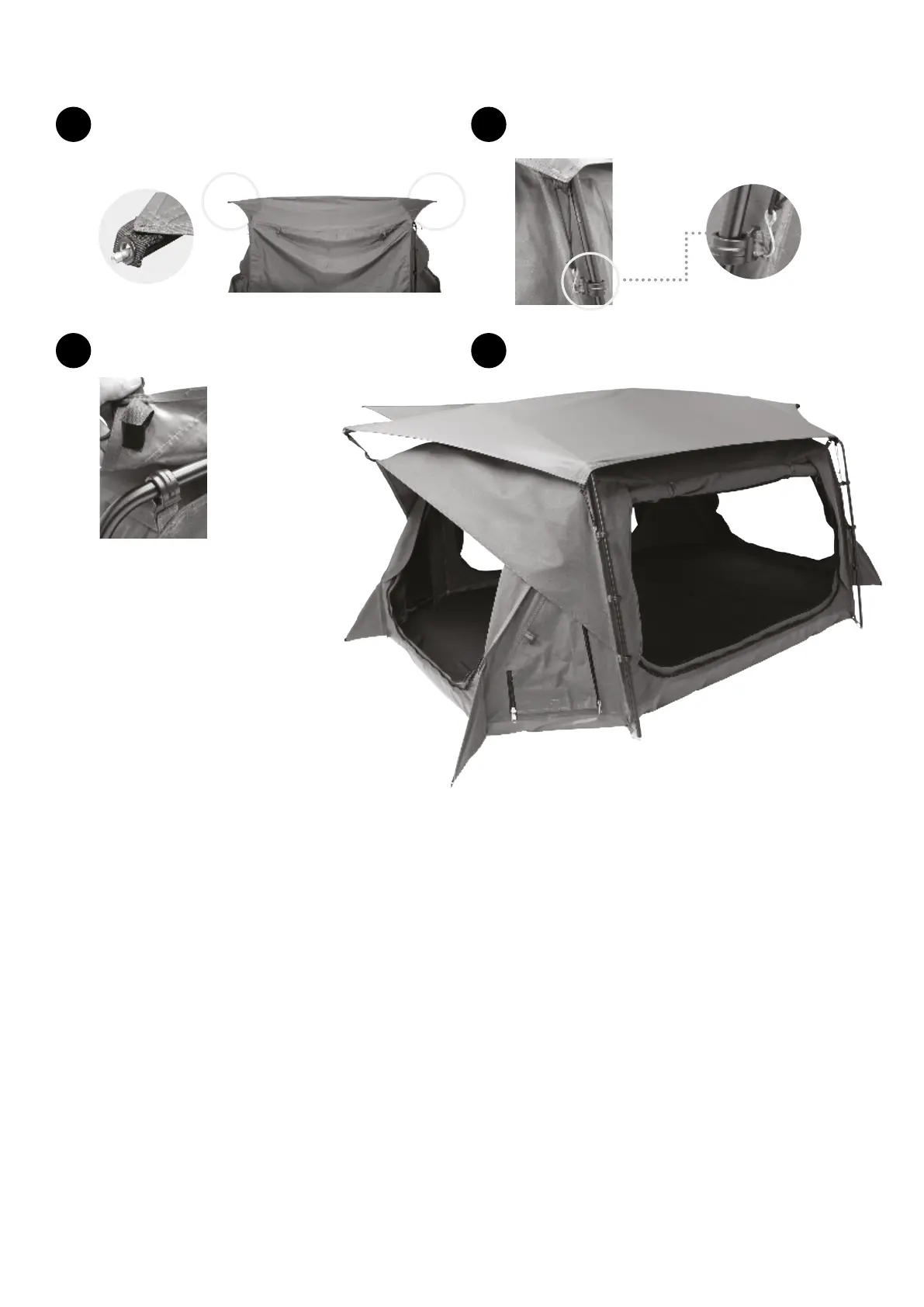 Secure velcro tabs to the dome poles A and B. Set up complete.