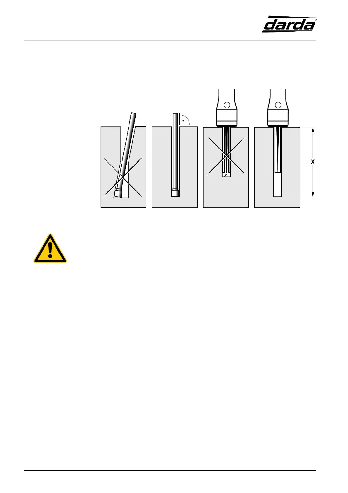 – The diameter of the borehole should not exceed / fall below the values stated in