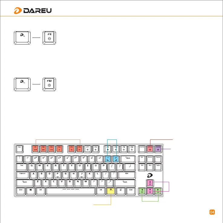 FN+SCRLK: to change color under each mode (mixed color, red, orange, yellow, green, cyan, blue, purple,