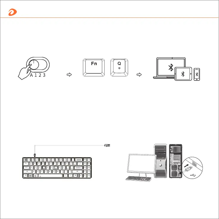 Dareu EK871 - How to Connect; Bluetooth Connection; Wired Connection