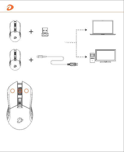 1- Отсоедините приемник 2.4G и включите мышь;