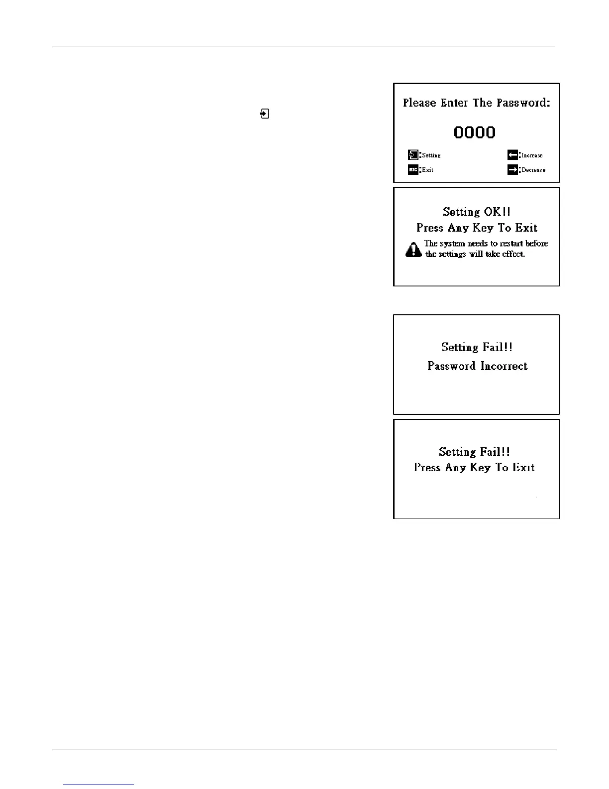 If the password was entered correctly, the display will show a “Setting OK!!”