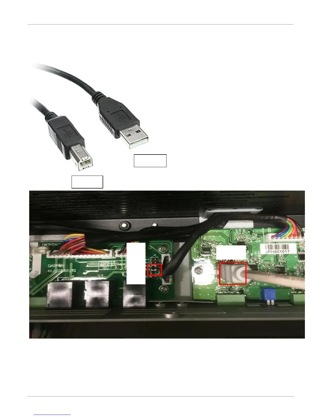 Step 2: Please use the USB wires (Type-A <->Type-B) and plug in the USB Type-B connector to the USB