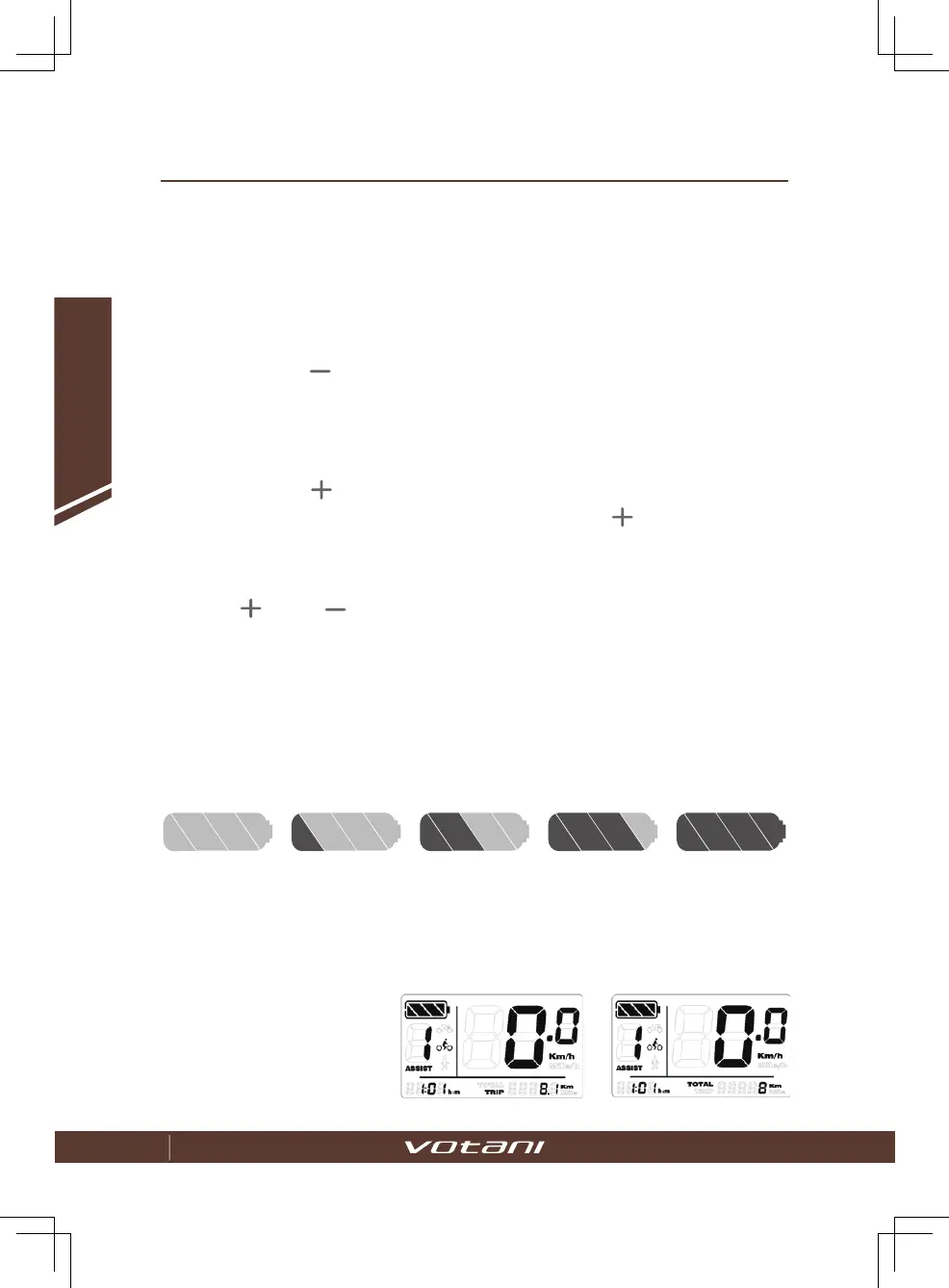 Druk langdurig op [ ], om ondersteuning bij lopen te starten. Licht op scherm op. Fiets