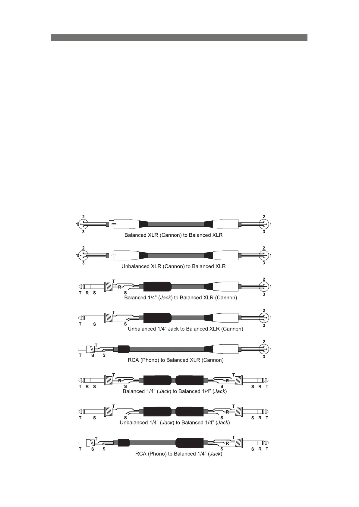 processor or amplifier inputs. The connectors on the left-hand side come from a signal source, and the ones