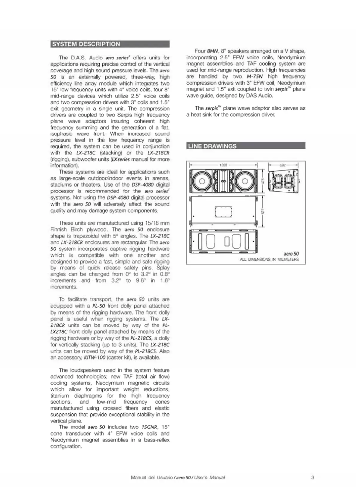 DAS Aero 50 - System Description; Aero 50 System Overview; Line Drawings and Dimensions