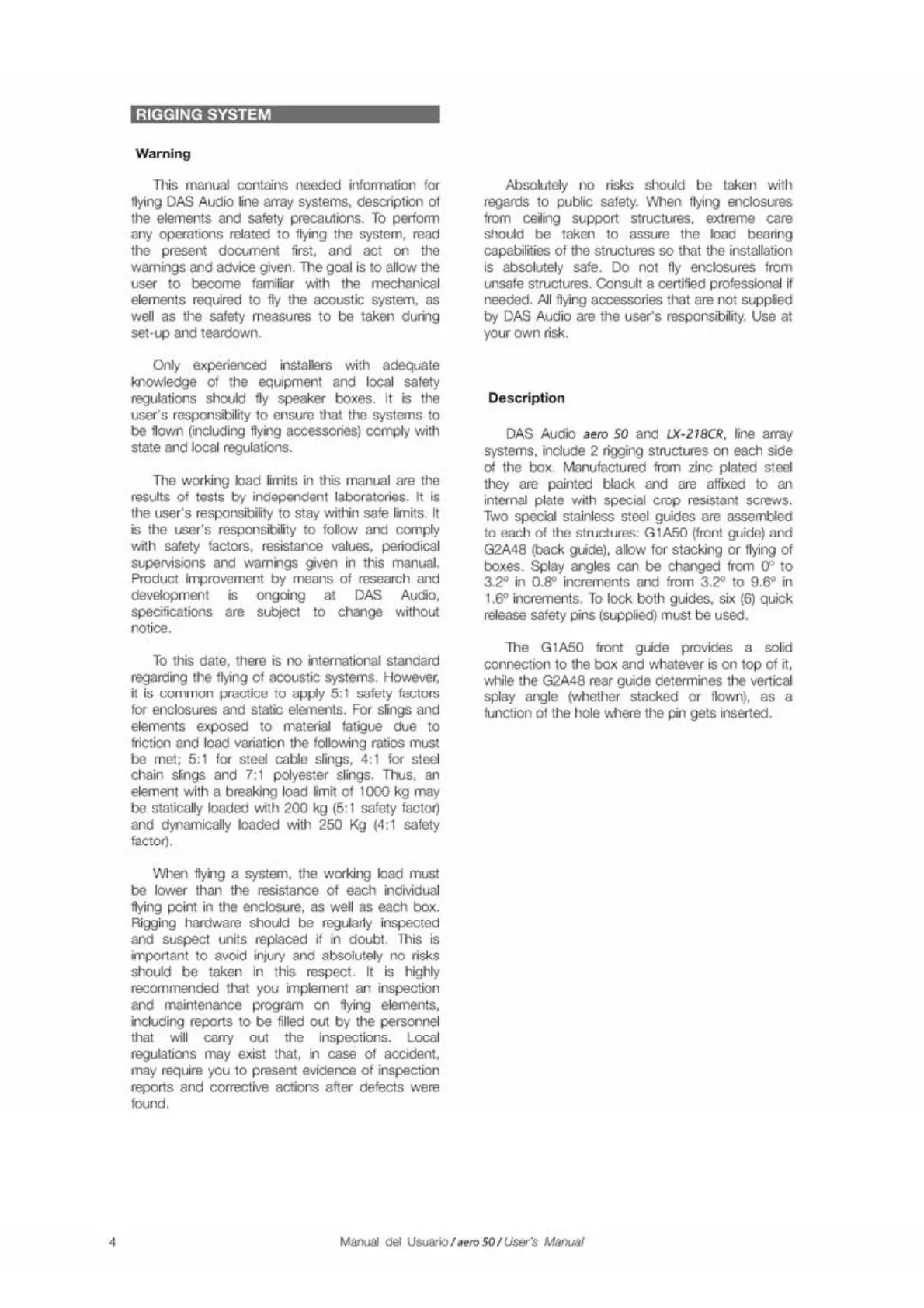 DAS Aero 50 - Rigging System; Rigging Safety Warnings