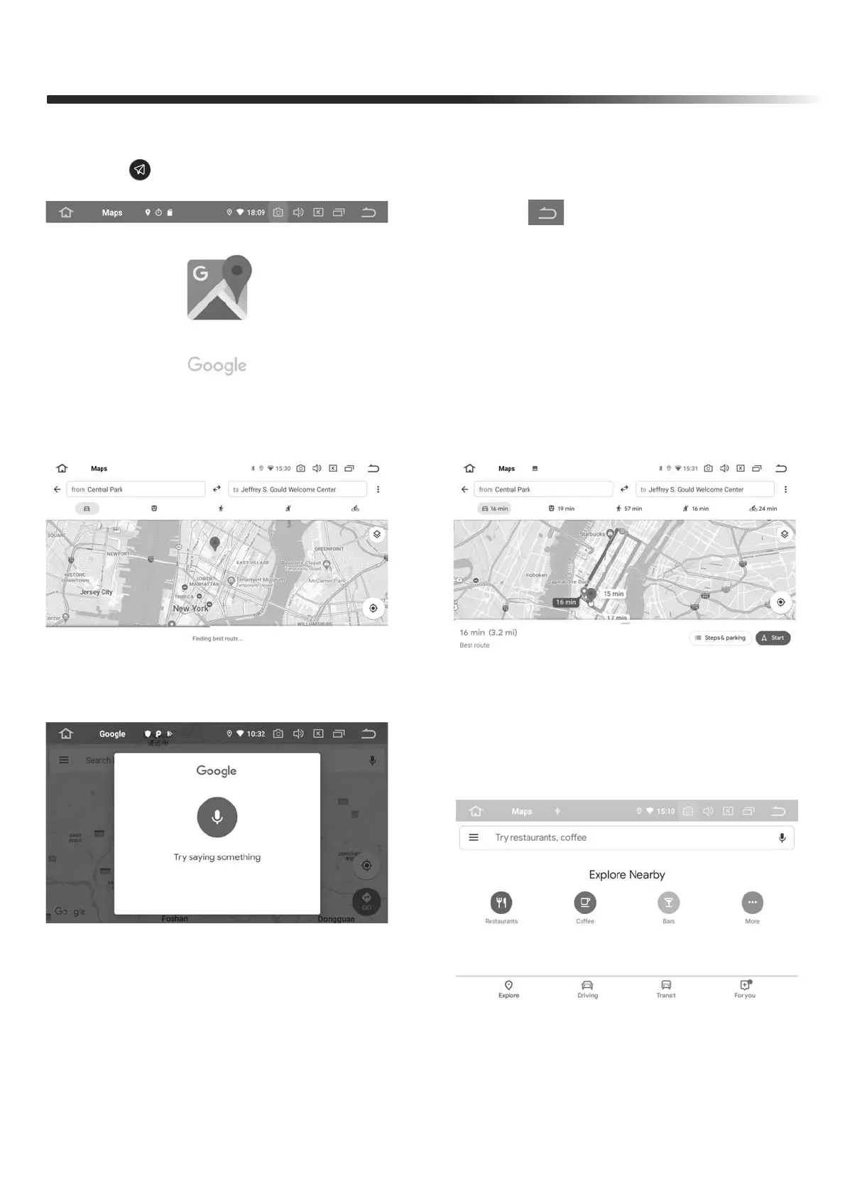 Touch " " in main menu to enter Navigation interface
