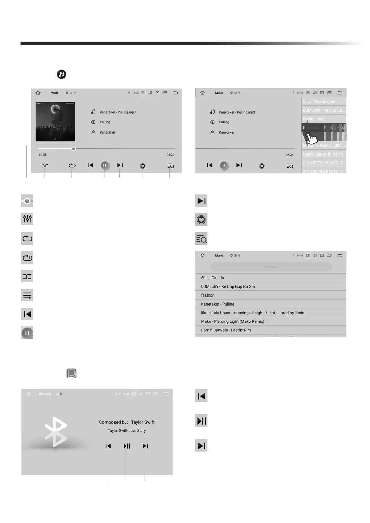 Touch " " in main menu to enter Music interface
