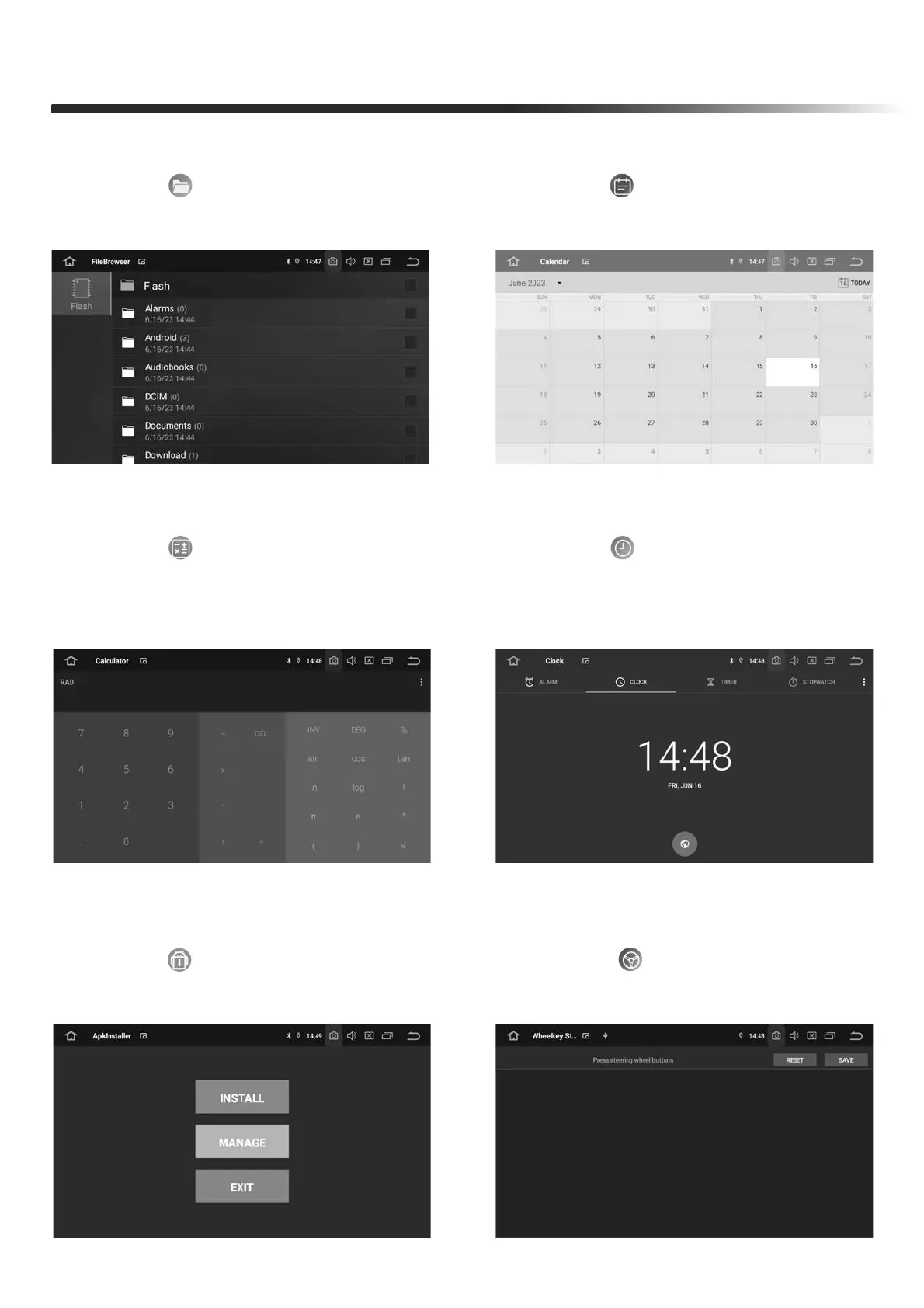 menu to enter the Calendar page