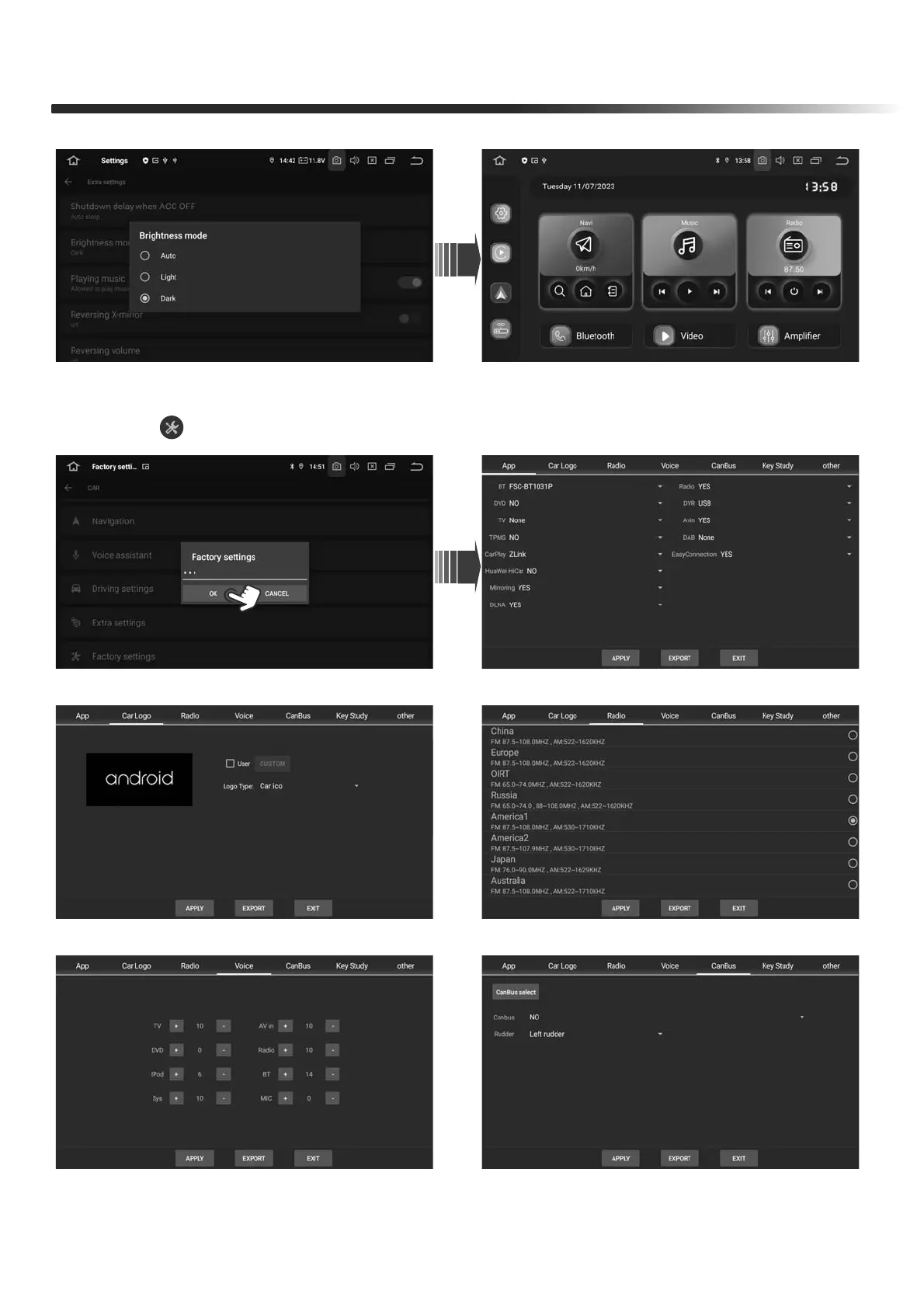 Press the " " icon to go to the Factory settingsPassword126