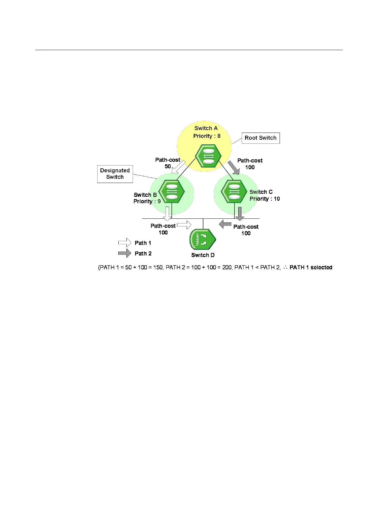path-cost of SWITCH C to D). Therefore the PATH 1 with lower path-cost is chosen. In
