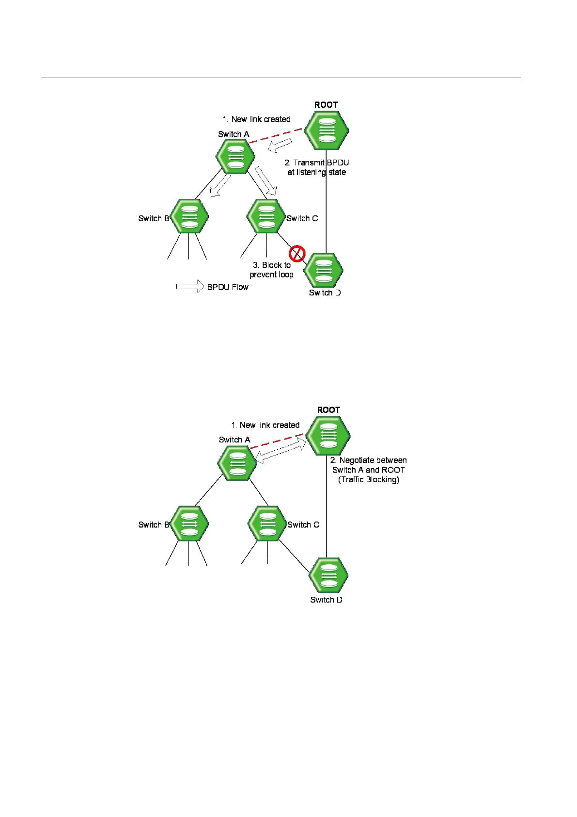SWITCH D and SWITCH C is blocked. Then, right after the connection, it is possible to