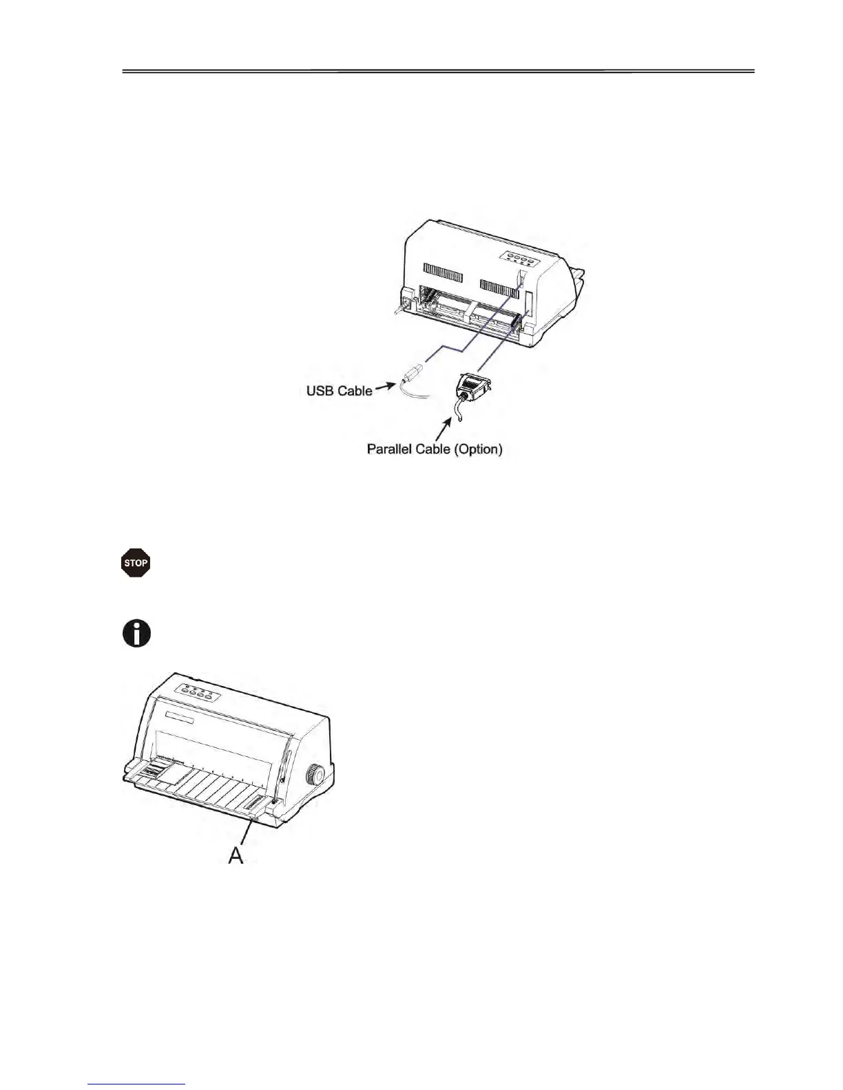 The 36-pin Centronics parallel and USB ports locate at the rear of the printer. IMPORTANT: