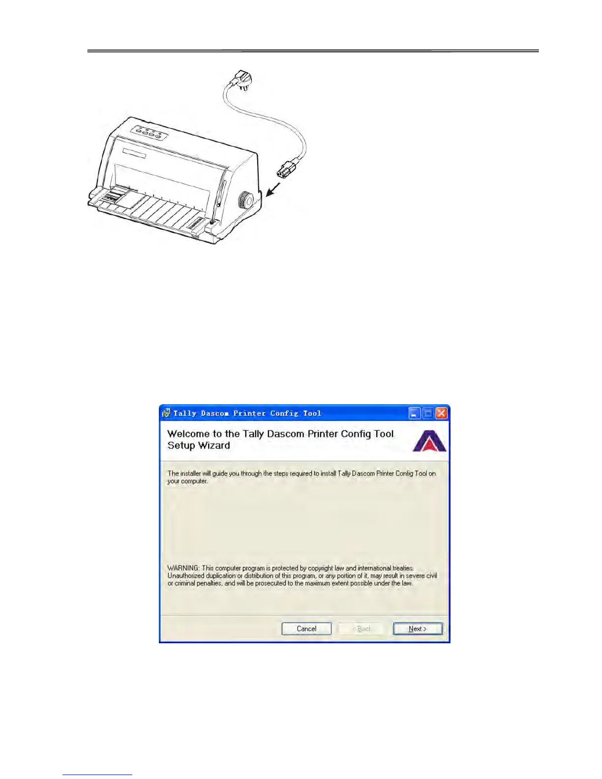 Installer “Tally Dascom Printer Config Tool Setup.msi”. You will see the follow