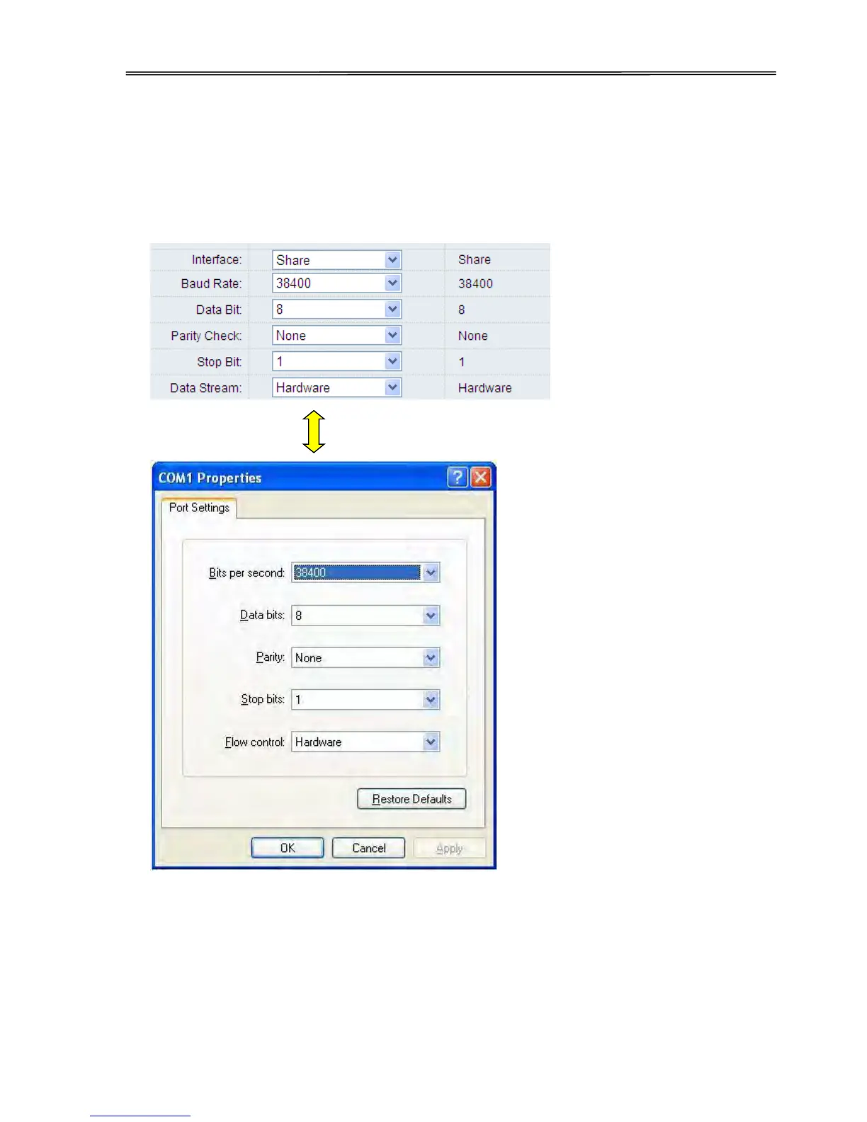 2. Make sure the “Interface Setup” selects serial interface and the settings are the same as