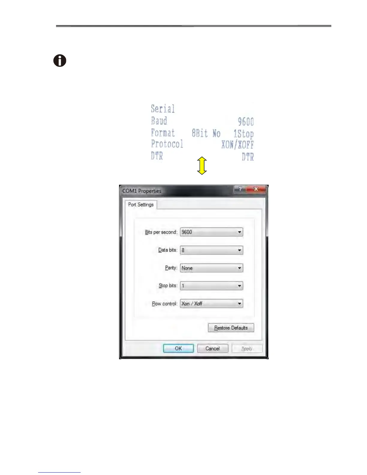 2) Make sure the “Interface Setup selects serial interface and the settings are the