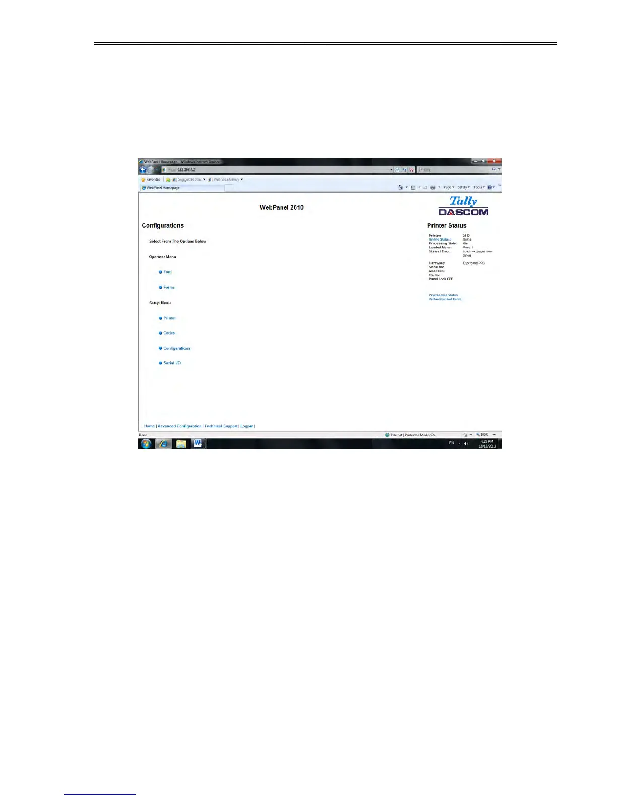 Selecting this option allows you to configure specific parameters in the printer. When one of