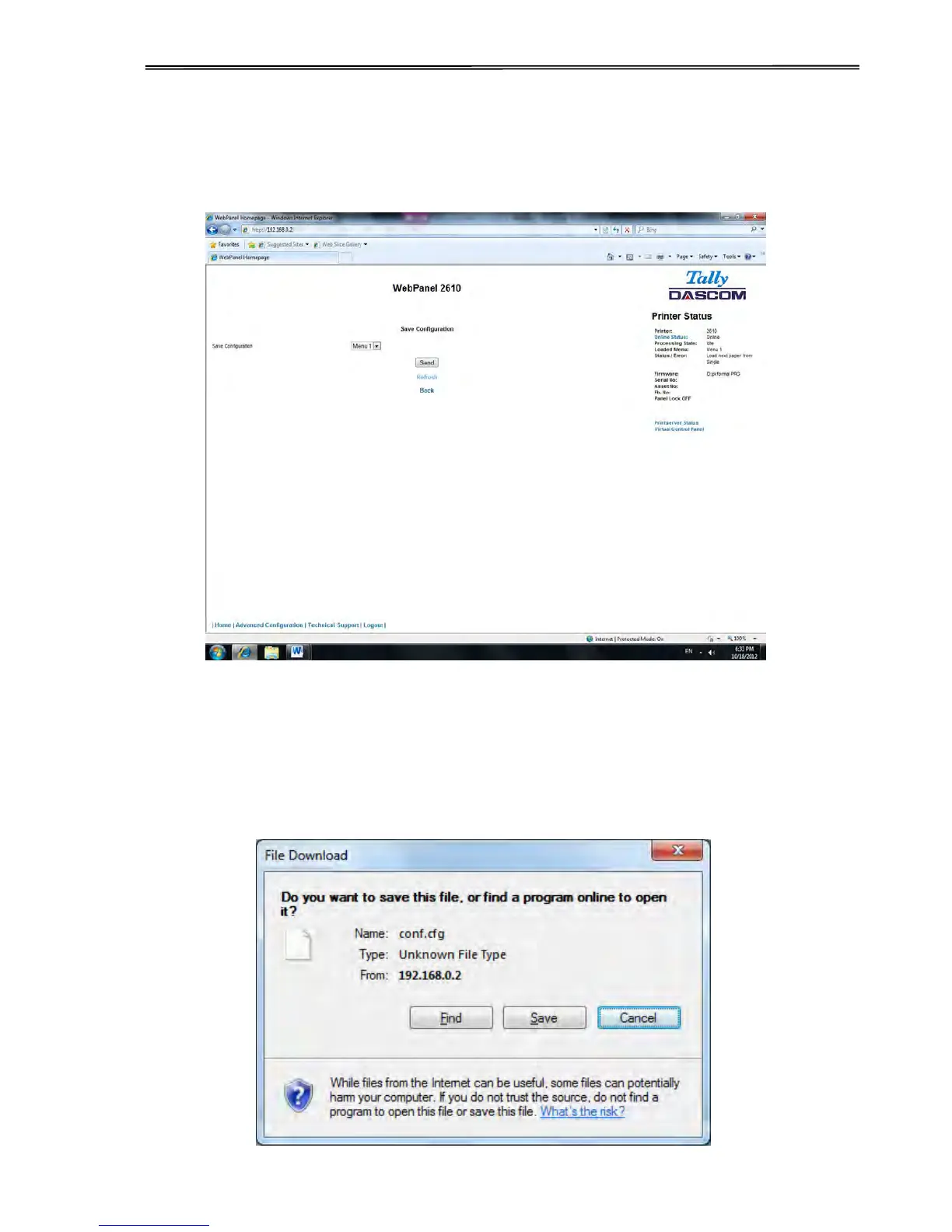 Dascom 2600 - Save Configuration; Retrieve Configuration from Printer