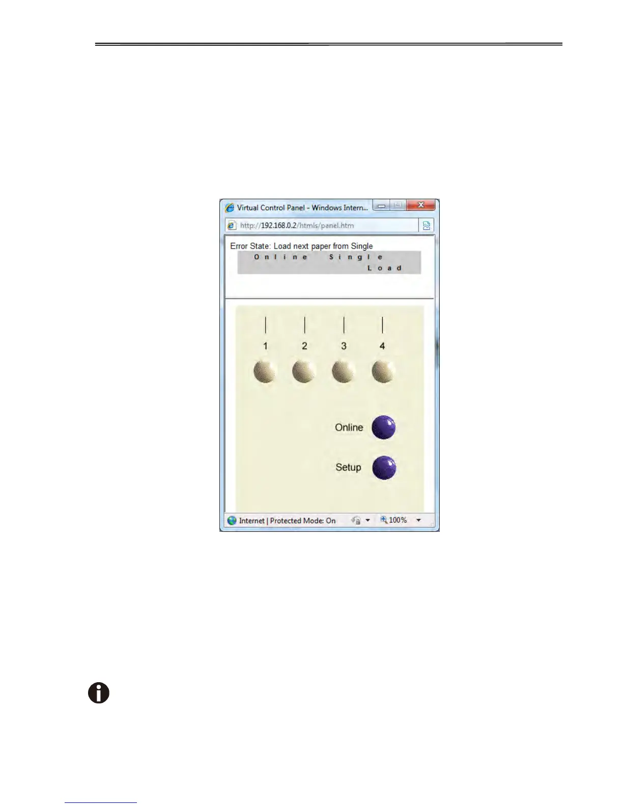 Printer Status area. The Panel Lock feature affects the virtual panel in the same way as the