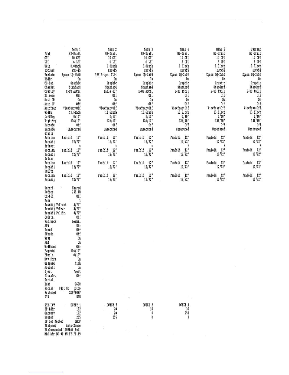 Menu Printout
