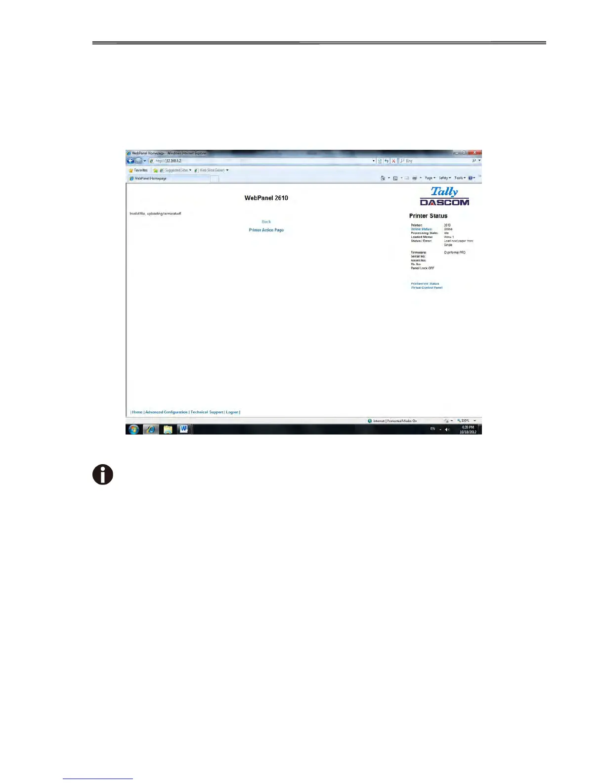 If the process is successful, the printer will reboot and the following page will be displayed: