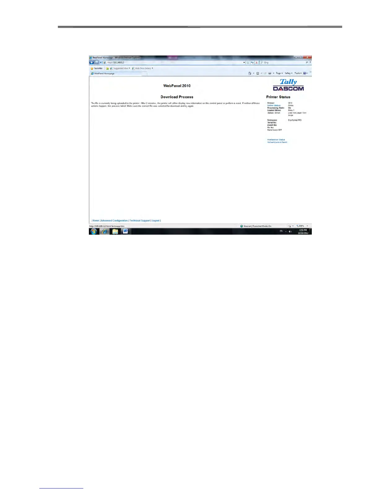 If the process is successful, the printer will reboot and the following page will be displayed: