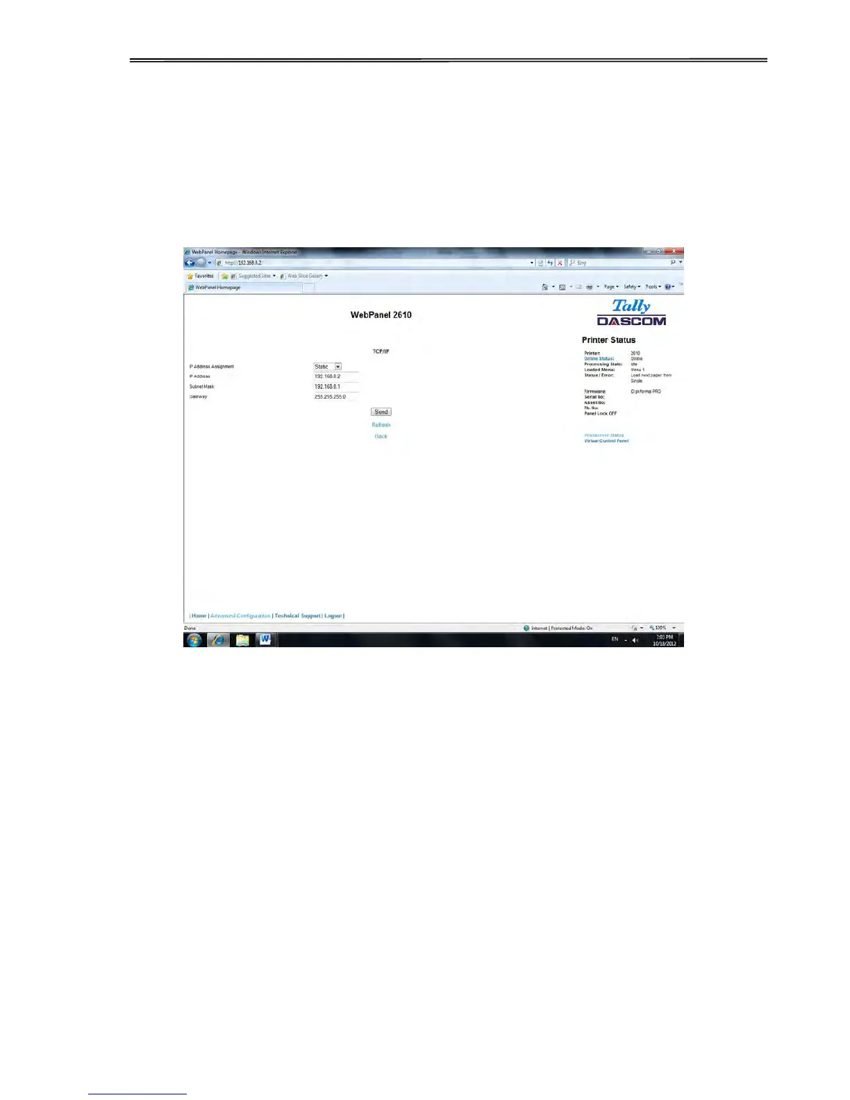 The TCP/IP Page allows the user to modify the existing TCP/IP information for the printer.