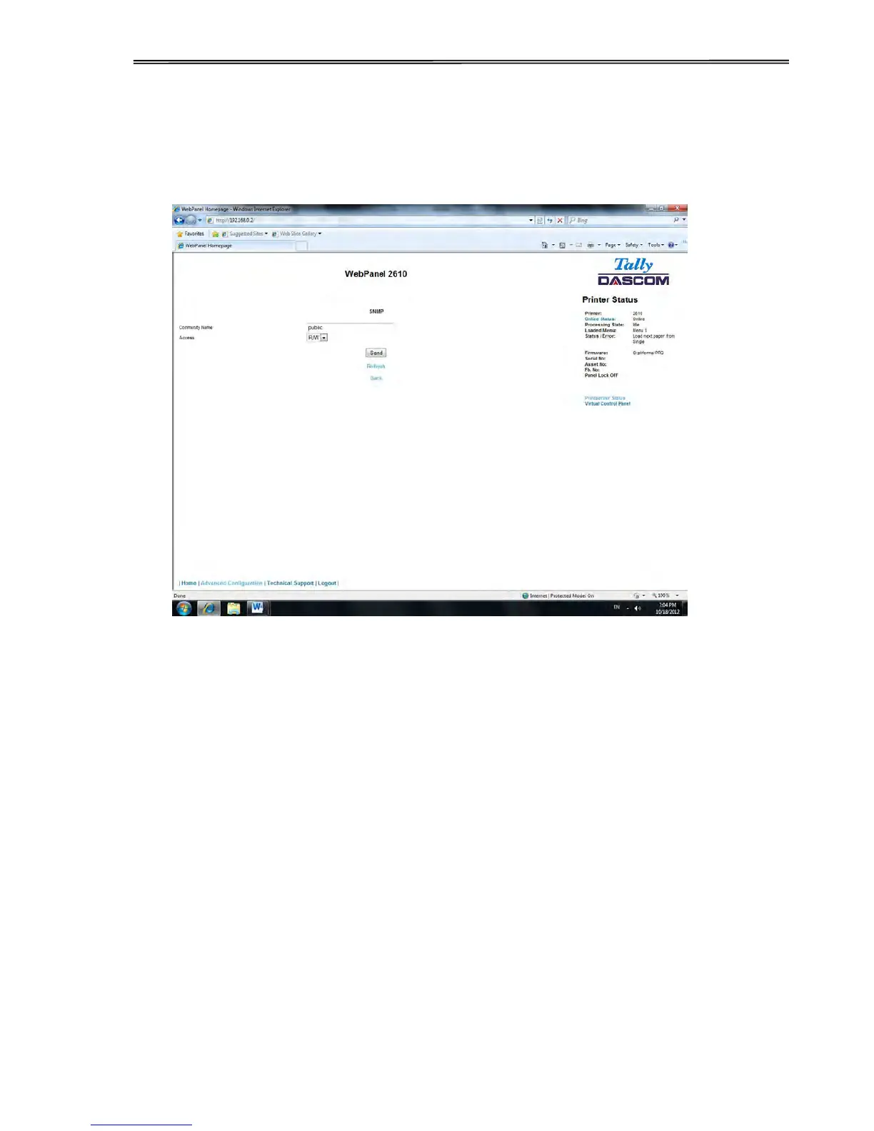 The SNMP page allows the user to set the Community Name and the Access. The page