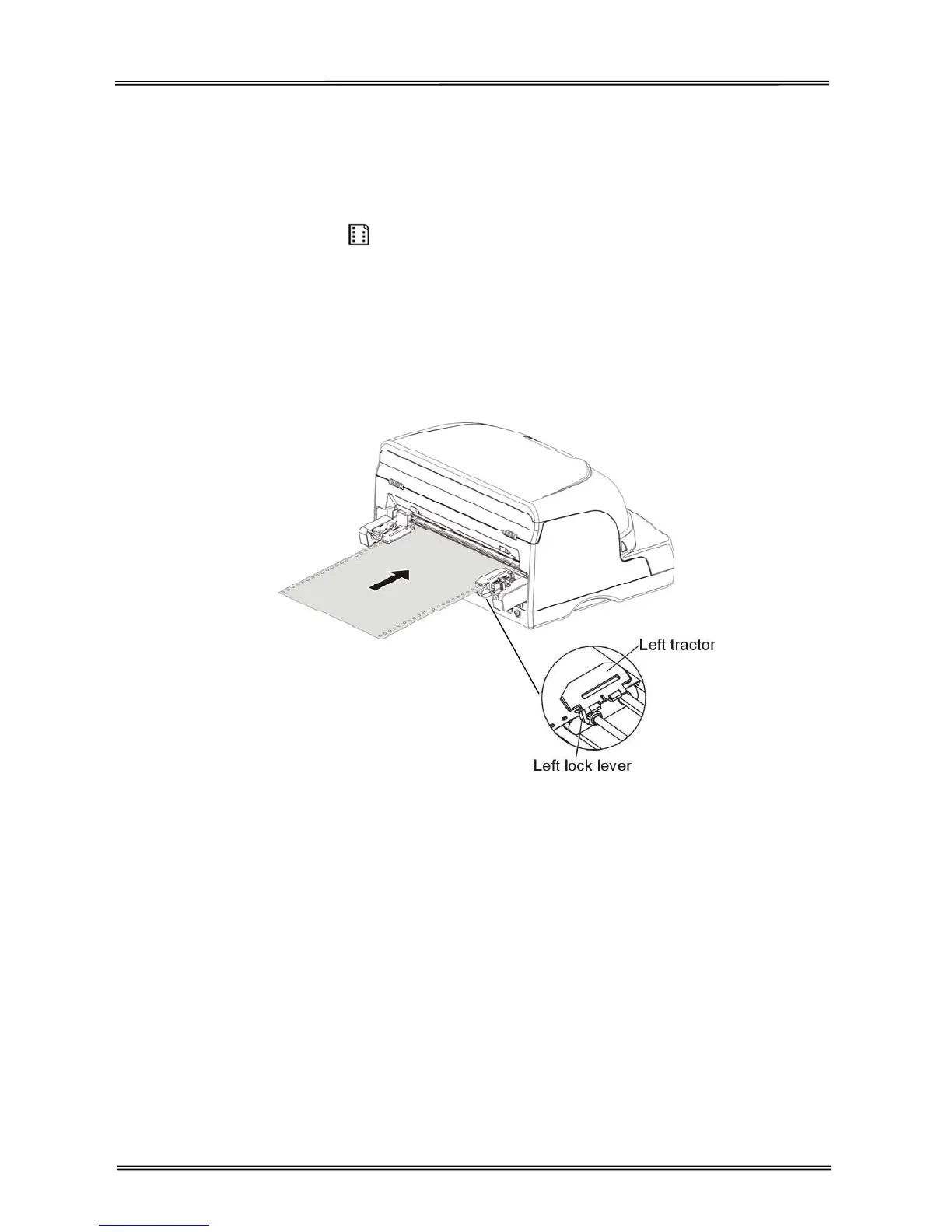 4. Adjust the right tractor to the width of the paper until the paper is flat. Do not stretch the paper too taut.
