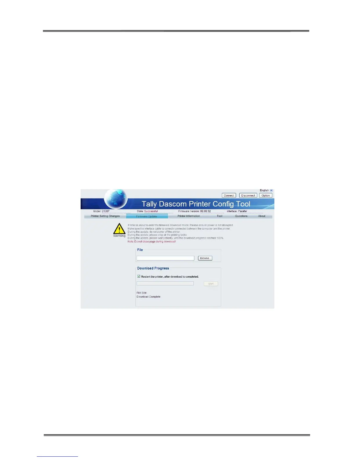 1) Do not switch off the printer or disconnect the cable during the update process.