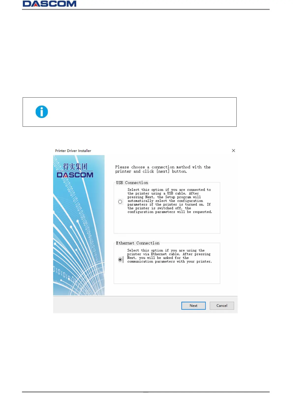 (1) Select Ethernet connection. Click “Next”.