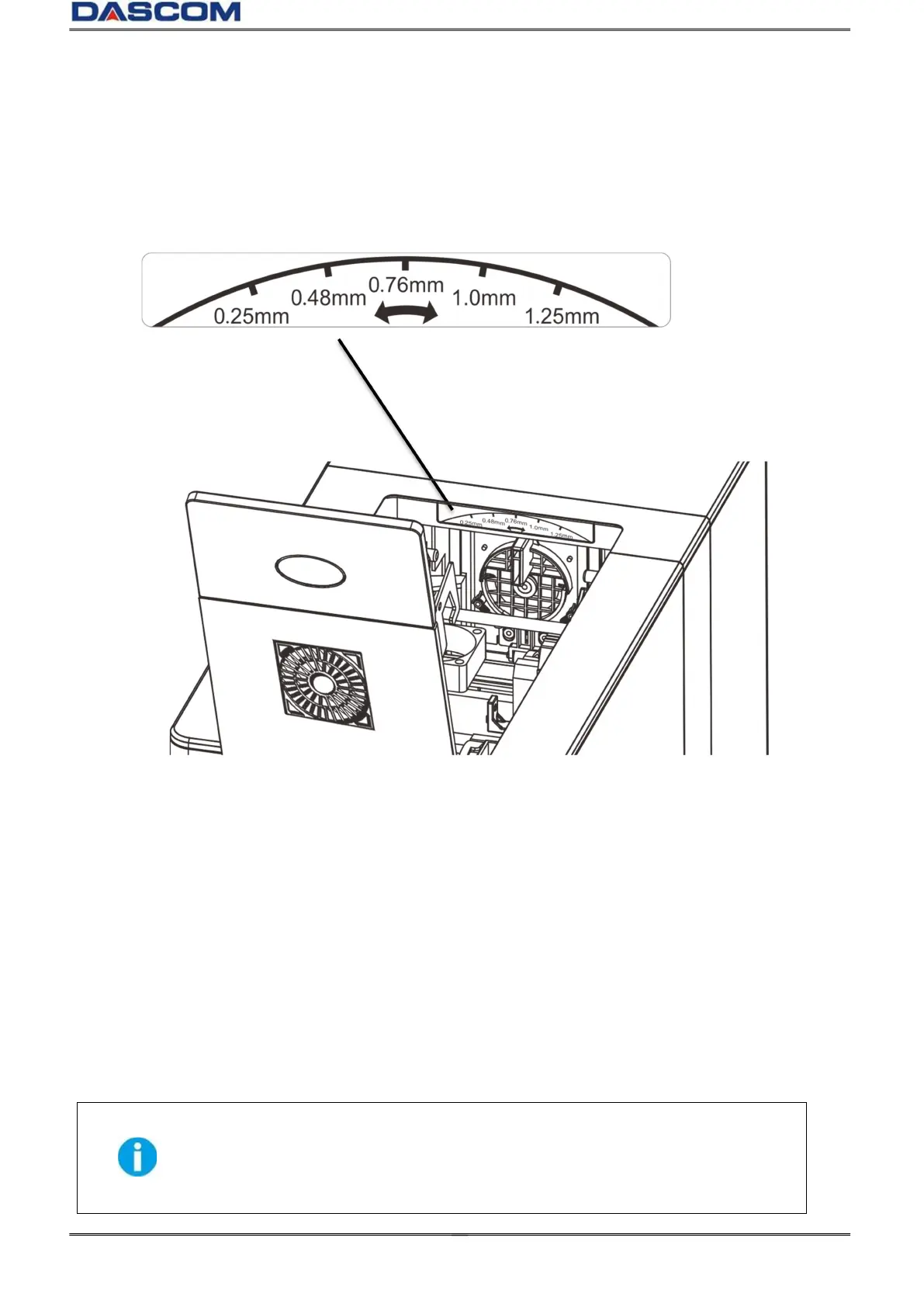 0.76mm(30mil) and 0.76mm(30mil)~ 1.25mm (50mil) , 5 levels. Set the lever to the correct position.