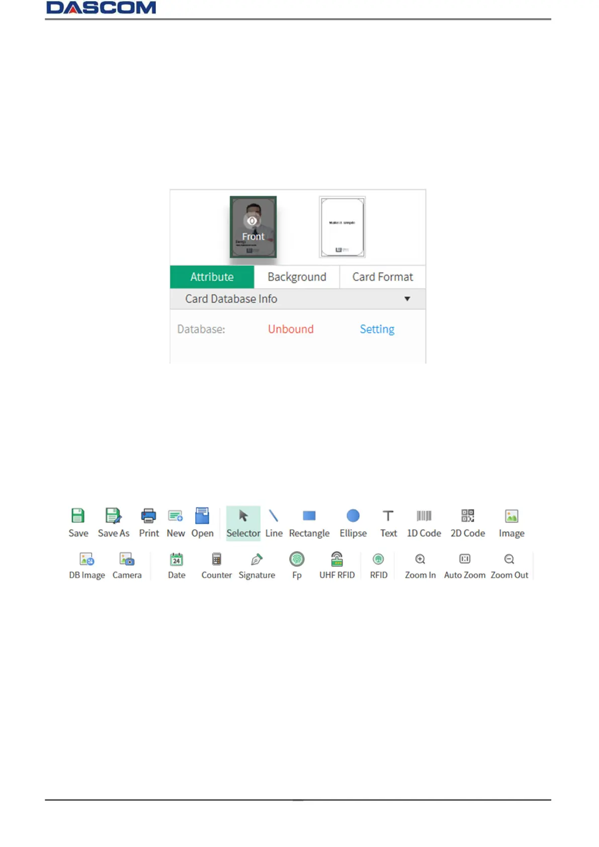 (3) On the right menu, you can see the items “Attribute”, “Background” and “Card Format”: