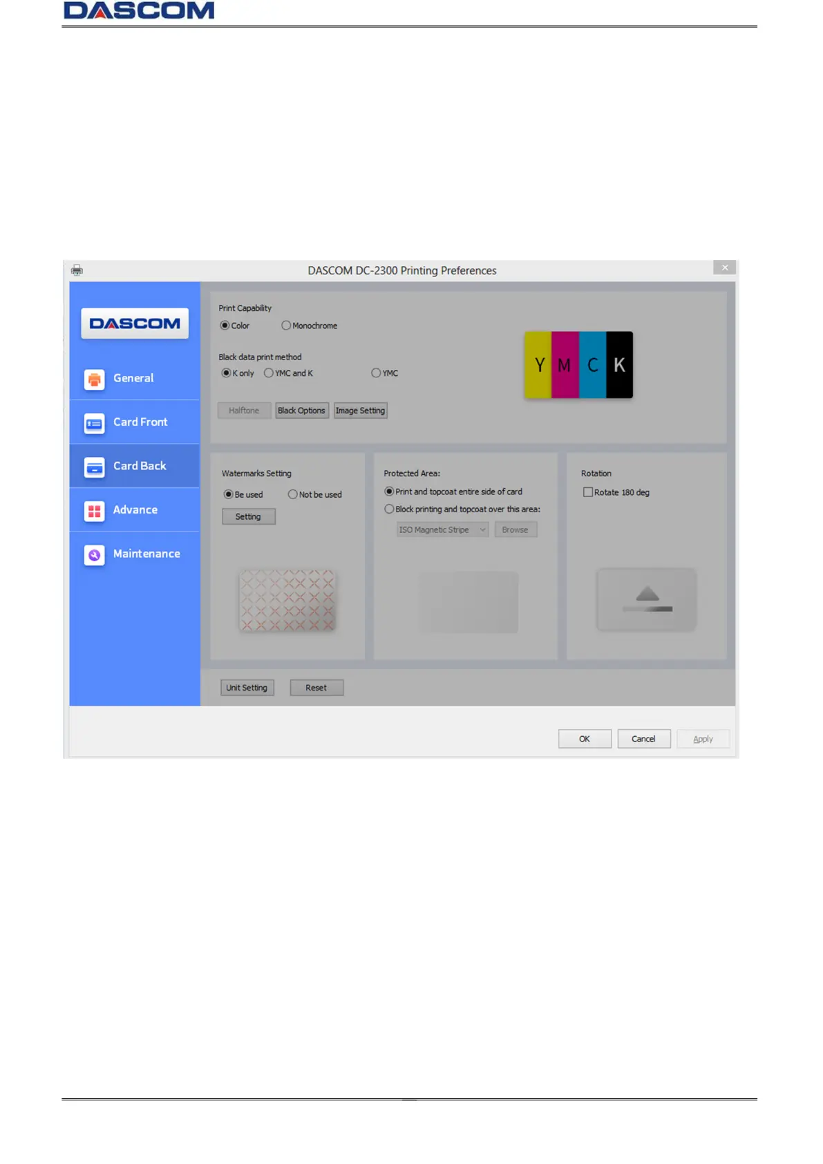 or YMC colors. As well as, user can choose monochrome printing, color printing)