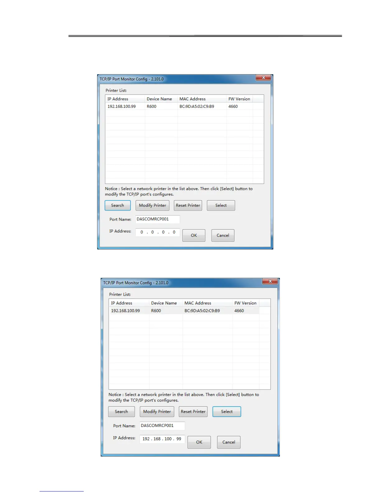 (6) Select you printer, click “Choose”, the corresponding IP address information