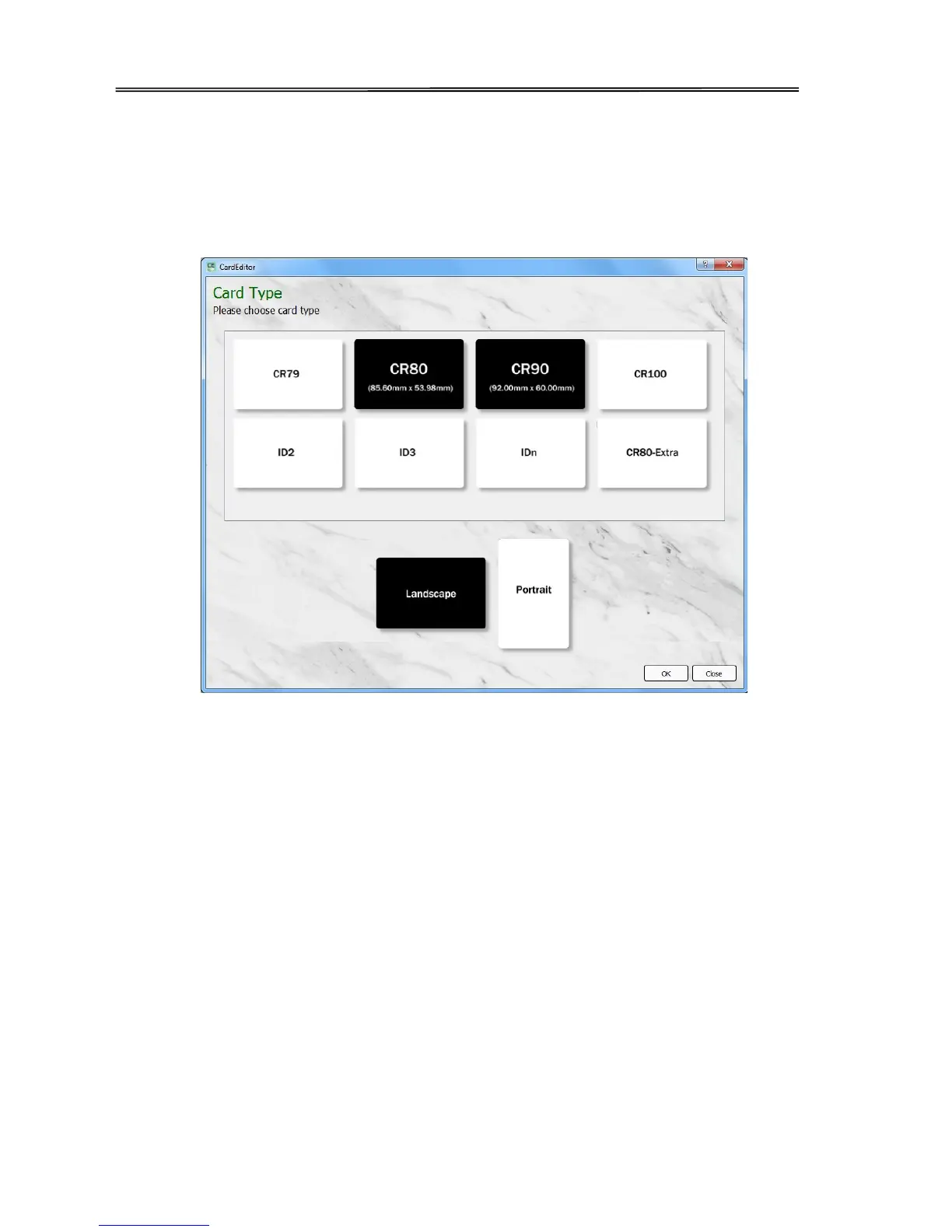 type” and select “Landscape” or “Portrait” in the “card direction”. Then click “OK”.