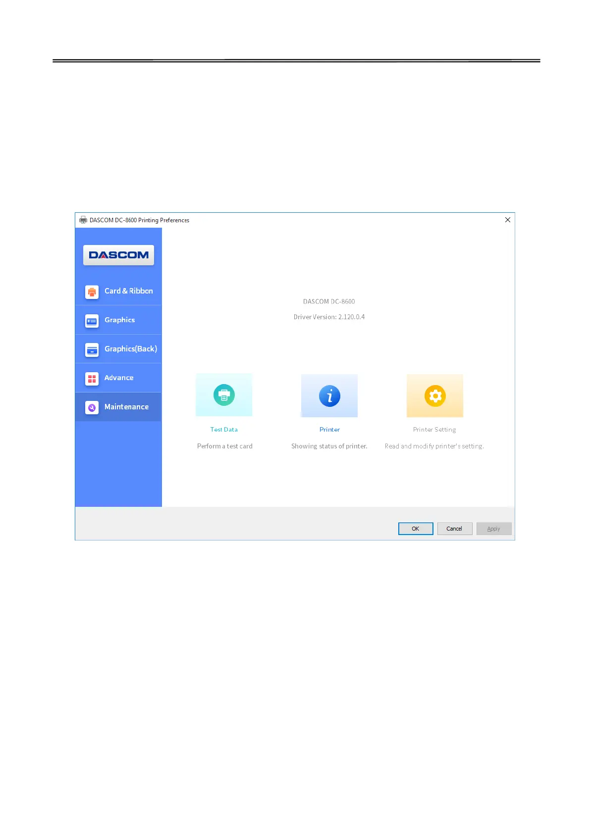 User can check the printer DPI, the maximum printing area and minimum printing area.