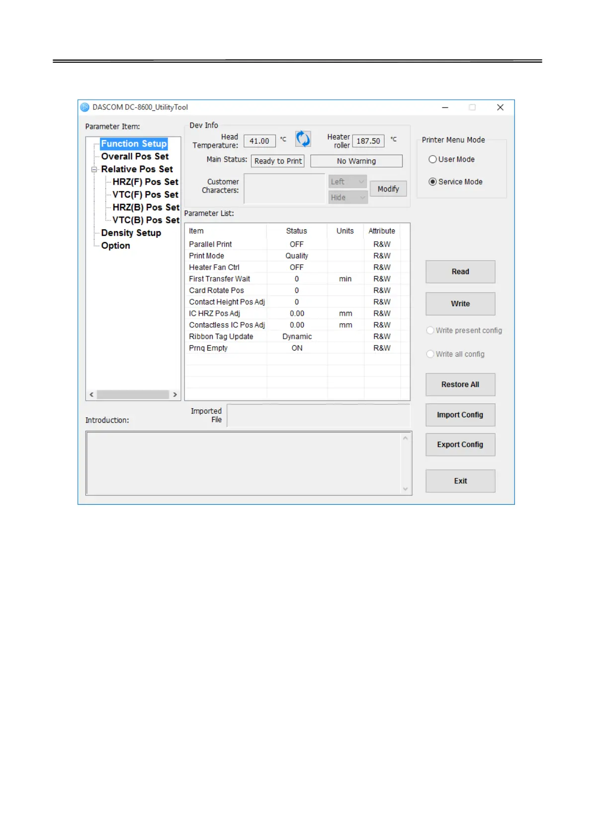 settings, print head,