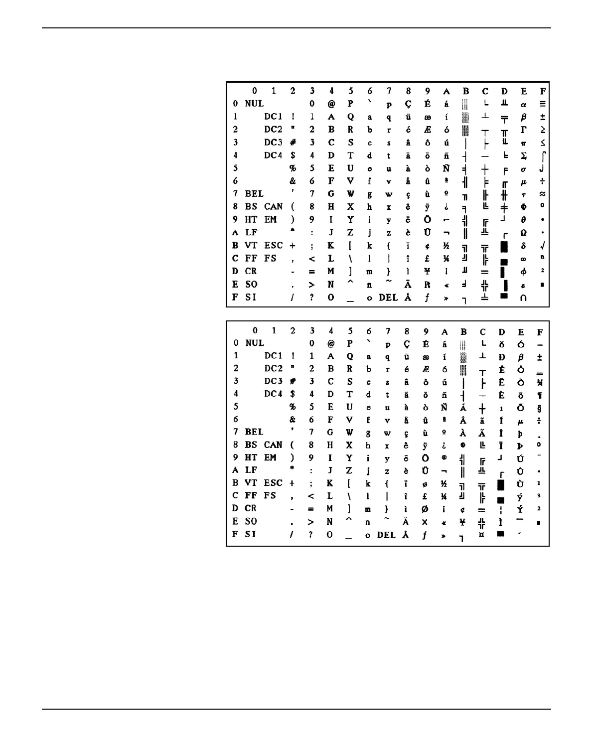 Dascom T5040 - IBM Code Pages; Code Page 437; Code Page 850