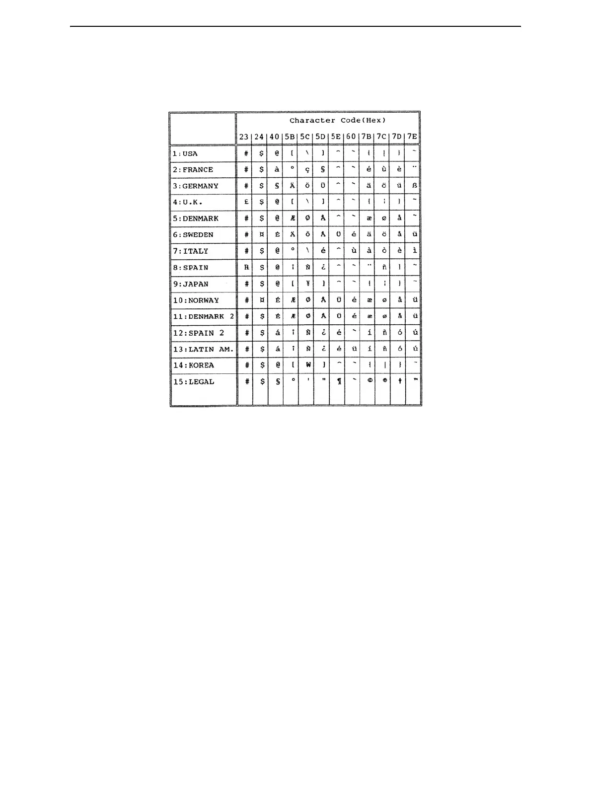 The following table shows “national” characters that differ with languages. Character co-
