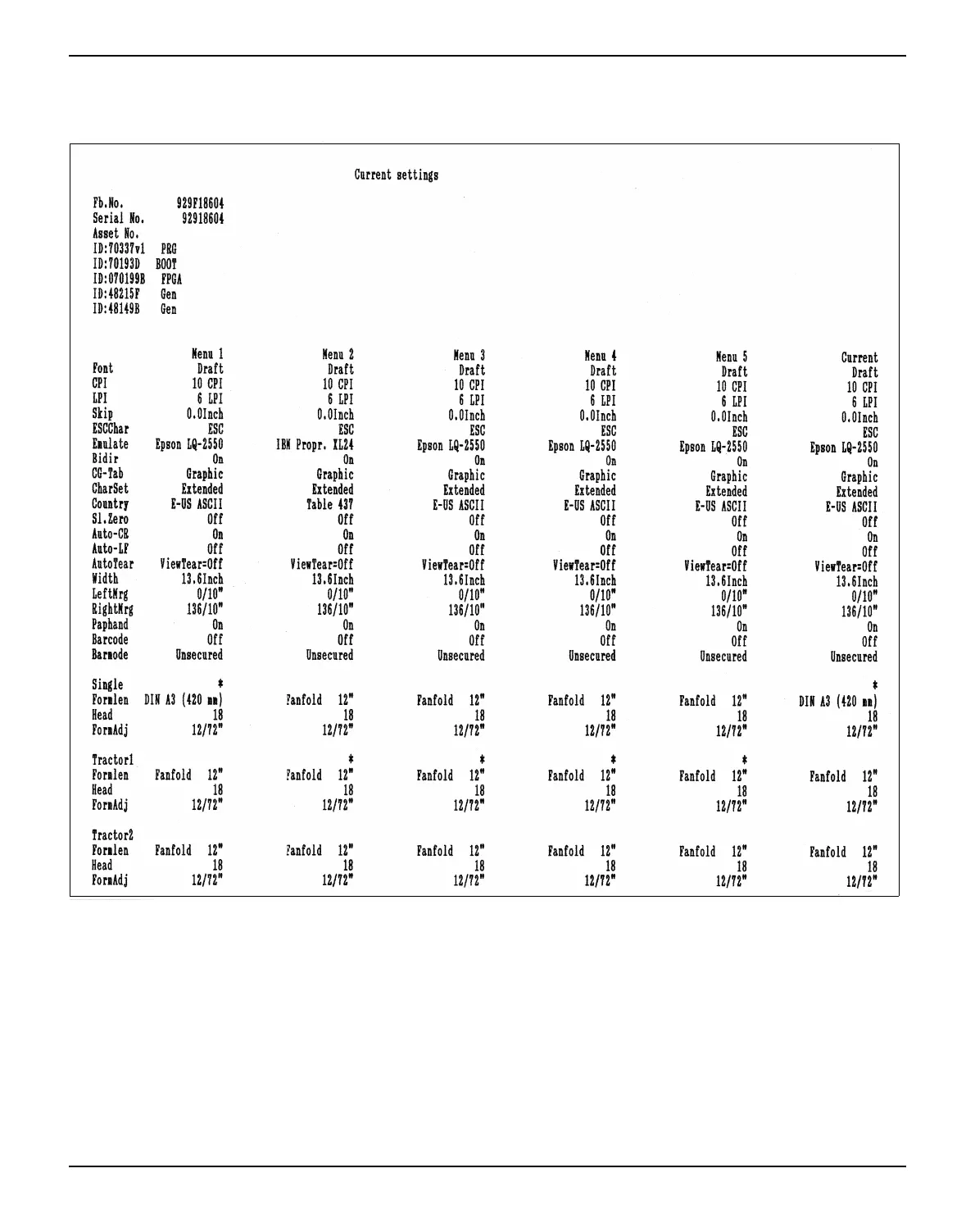 Dascom Tally T2380 - Menu Settings (Example)