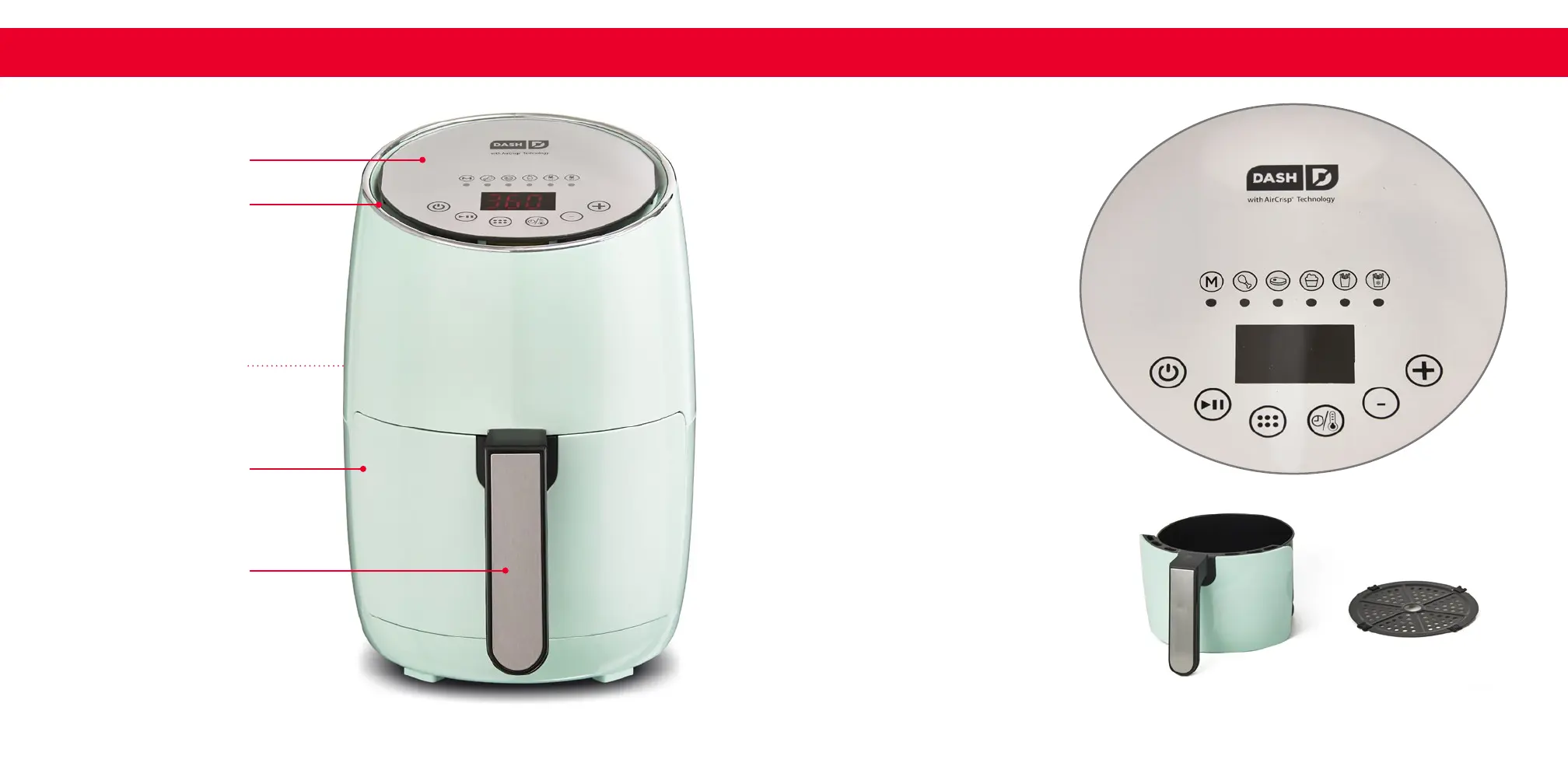 Dash AirCrisp DCAF155 - Parts & Features; Control Panel Overview; Drawer and Tray Components