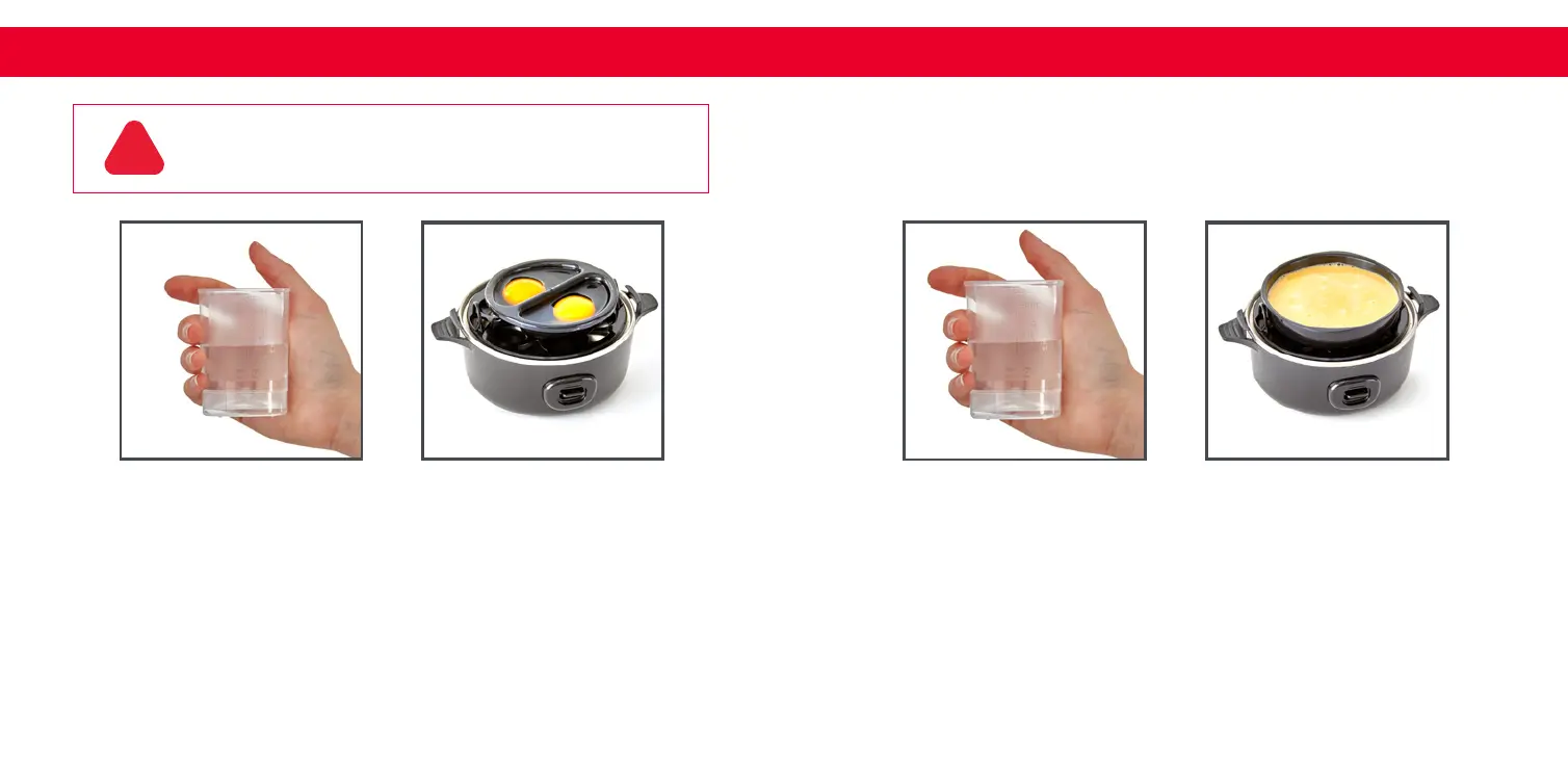 Fill the Measuring Cup with cold water until it reaches the “Omelette/Poached”