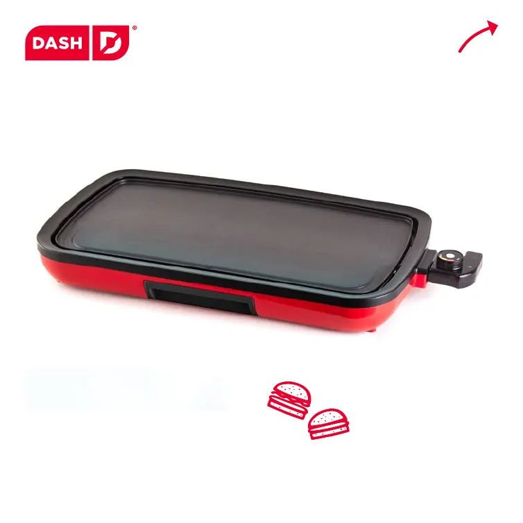 The most likely cause is a buildup of burnt food residue on the Cooking Surface. To resolve this, allow the Dash Everyday Griddle to cool completely. Pour a small amount of cooking oil onto the surface and let it sit for 5–10 minutes. Then, scrub the surface with a sponge or soft-bristled brush to loosen the food residue. Wipe down the Cooking Surface with a damp, soapy cloth, rinse the cloth, and wipe the surface again. If food residue persists, pour on cooking oil and let sit for a few hours, then scrub and wipe clean.