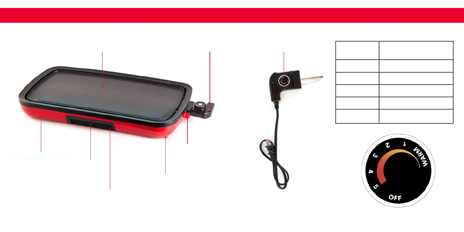 Dash EVERYDAY DEG205 - Parts and Features Overview; Component Identification; Temperature Control Dial Settings